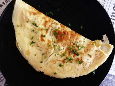Сделала на завтрак омлет без масла на сковороде по этому рецепту. Приготовление очень простое и быстрое. Яйца взяла домашние, молоко с небольшим количеством жира, из специй добавила соль и черный молотый перец. Слегка взбила всё вилочкой и вылила на сухую и чистую разогретую сковороду без масла. Готовила омлет под крышкой на медленном огне 5 минут. Яйца схватились довольно быстро. На удивление омлет не прилип к сковородке. Свернула омлет прям на сковородке и переложила на тарелку. Посыпала измельчённой зеленью петрушки. Потрясающе красивый, ароматный и вкусный вышел завтрак. Всего за считанные минуты великолепный, сытный, полезный и лёгкий завтрак готов. Отличный рецепт! Советую всем попробовать) Большое спасибо автору!