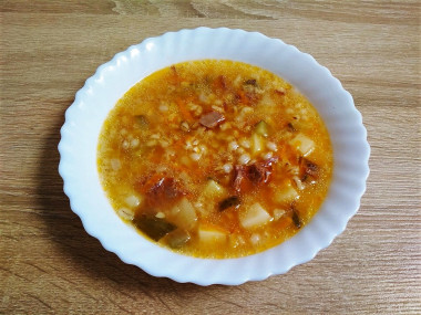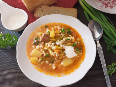 Для более быстрого приготовления рассольника в мультиварке с перловкой я предварительно отварила мясо и замочила перловку Использовала малосольные огурцы и рассол от них, а вместо томатного соуса свежие помидоры. Рассольник получился настолько вкусным, что, снимая пробу, я решила не добавлять никаких специй и даже зелени. Густой, наваристый, сытный суп! Спасибо за рецепт!