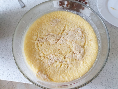 Также венчиком перемешайте яично-сахарную массу с маслом. Оно пойдет хлопьями, ничего страшного.