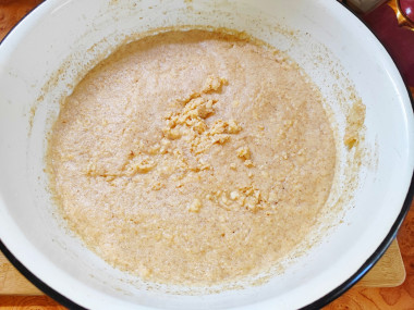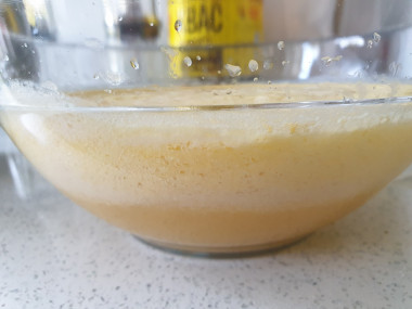 Накройте миску с опарой полотенцем и оставьте на столе на 8-12 часов. Время будет зависеть от температуры в помещении. Чем теплее, тем быстрее подойдет опара. Готовая опара покроется треснувшей корочкой, под которой будет активно пузыриться. Если этого не произошло, то придется все начать заново с другими дрожжами.