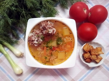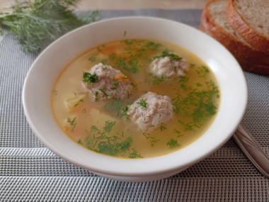 Сварила тефтелевый суп с рисом. Фарш использовала свиной. Фрикадельки отлично держат форму, рис успел дойти до готовности даже без предварительного отваривания. Минимальное количество ингредиентов для супа и тефтелей позволяет приготовить его буквально на скорую руку, а в результате получается аппетитный, вкусный суп. Спасибо за рецепт, Мария!
