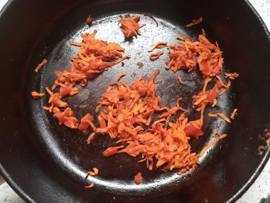 В сковороде разогрейте растительное масло и обжарьте на нём морковь до мягкости.