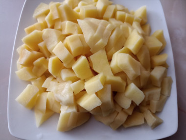 Все овощи помойте. Картофель очистите и нарежьте средним кубиком.