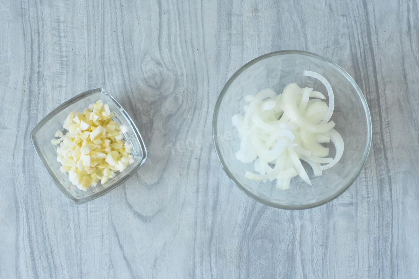 Шаг 3. Как правильно нарезать лук и чеснок?
