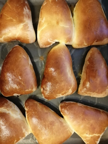 Очень румяные и аппетитные булочки получились! Очень пышные, нежные. Считаю тесто удачным, оно у меня хорошо поднялось. И я старалась сделать их ровненькими. Подкупило то, что тесто нейтральное, и выпечку на нем можно делать и сладкую, и несладкую. Благодарю душевно за рецептик!