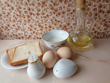 Как пожарить гренки из белого хлеба с яйцом и молоком? Подготовьте все необходимые ингредиенты. Хлеб берите белый, на мой вкус гренки из него получатся вкуснее, чем из черного хлеба. Хлеб можно использовать любой по наличию и вкусу: формовый, каравай или батон. Количество ингредиентов по желанию можете изменить.