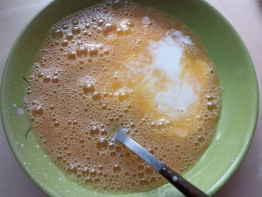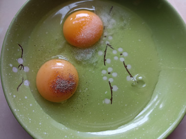 В широкую, просторную миску вбейте куриные яйца, добавьте щепотку соли и черного молотого перца (по желанию). Взбейте куриные яйца вилкой или венчиком до получения однородной по консистенции смеси с небольшой пенкой на поверхности. Если это блюдо будет готовиться для детей, то вместо соли и черного молотого перца можно добавить сахар, получатся десертные сладкие гренки, которые дети больше любят.