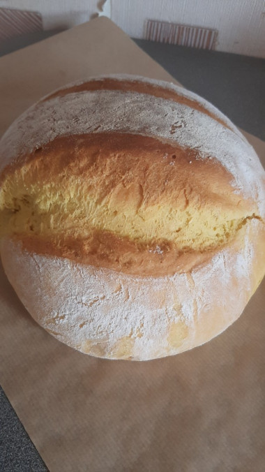 Со слов потребителя, - "хороший хлеб, с корочкой, мягкий внутри". Критику нашли только мои ошибки, а вернее один недочёт - кол-во сахара. Делюсь субъективным впечатлением: запах на кухне стоит, как в пекарне от супермаркета - пахнет настоящей сдобой, вызывает чувство сильного аппетита. Куркумы тоже не было в составе, но разве для ценителей вкуса это критично? По-моему, нет.