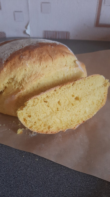 Хлеб из кукурузной муки в духовке получился мягкий, влажный, с хрустящей корочкой, очень вкусный. Правда куркумы я не положила. Но это на вкус не повлияло. Спасибо за рецепт!