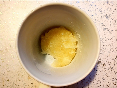 Разбухший желатин перелейте в сотейник или кастрюлю и поставьте на плиту. При постоянном помешивании, дождитесь пока желатин полностью раствориться, но не доводим смесь до кипения. Дайте смеси полностью остыть.
