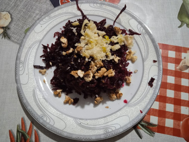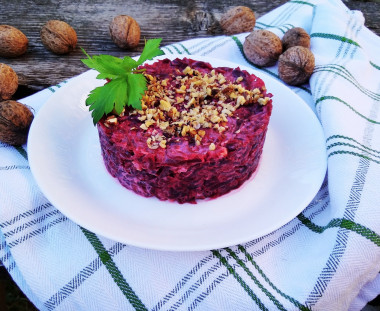Готовлю такой салат со свеклой с грецкими орехами и без них. И так, и так будет вкусно.