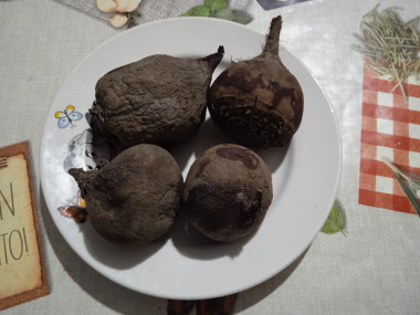 Свеклу отварите. Как сварить свеклу? Можете просто отварить ее в кастрюле в воде. Для этого хорошо помойте корнеплоды с щеткой, залейте их холодной водой и поставьте на средний огонь. После закипания огонь убавьте и варите свеклу от 30 до 60 минут, в зависимости от размера плодов. Также свеклу можно запечь в фольге духовке при t 180°С в течение 30-40 минут. Или в микроволновке при максимальной мощности 6-8 минут.