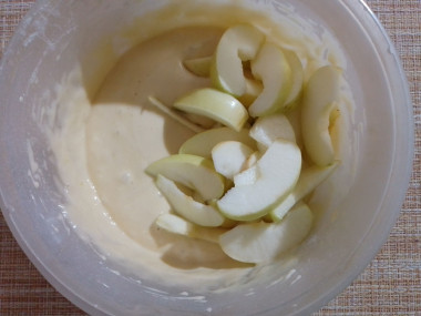 Выложите яблоки в тесто и перемешайте.