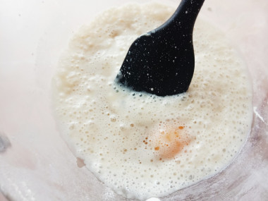 Сырое яйцо взбейте в миске с молоком до однородности. Взбивайте венчиком или вилкой.