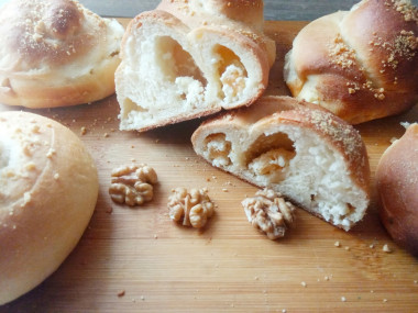 Испекла булочки с творогом из дрожжевого теста. Тесто готовила строго по рецепту, с начинкой немного импровизировала. Ванильный сахар заменила щепоткой ванилина, в творог добавила изюм. Для посыпки булочек использовала измельчённые грецкие орехи. Тесто по рецепту автора получилось замечательное! В работе очень приятное, после выпечки- мягкое, волокнистое, нежное. Чаепитие с такими булочками- одно удовольствие !Без сомнений беру рецепт в копилочку! Спасибо, Мария !