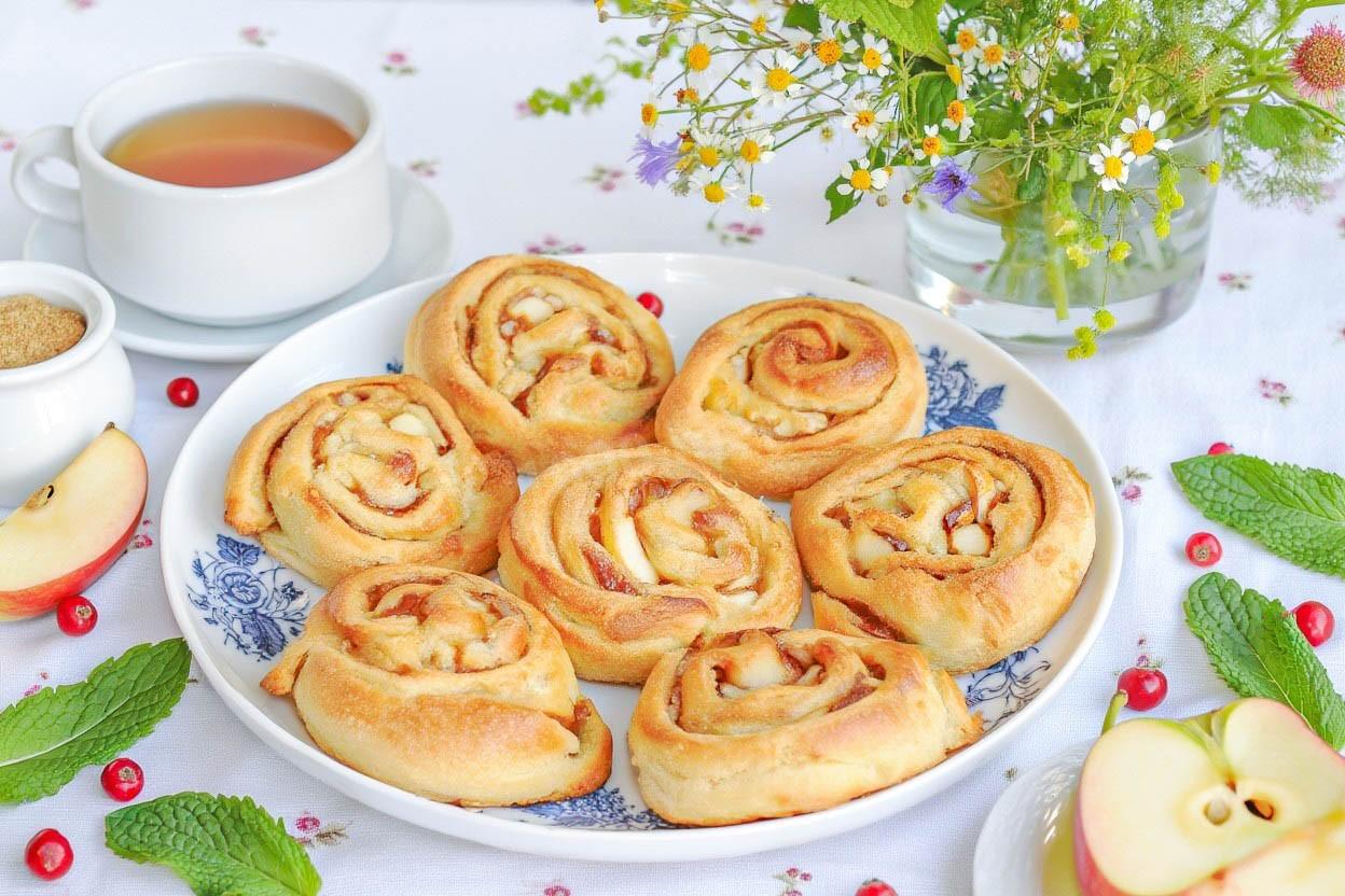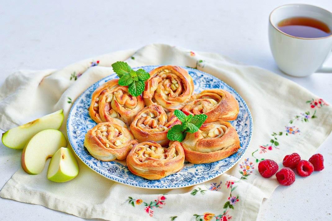 Знаете ли вы, что в классической венской кухне для яблочного штруделя тесто раскатывают так тонко, что сквозь него можно читать газету? Наш рецепт булочек из слоеного теста с яблоками гораздо проще, но сохраняет главный принцип: масло, запекаясь, создает слои, которые приподнимают начинку. Яблоко — один из немногих фруктов, который в выпечке становится только вкуснее, раскрывая свой букет именно в компании корицы и сливочного масла.