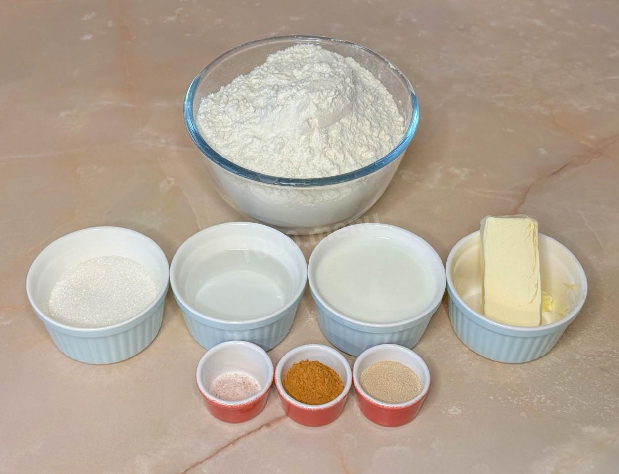 Для начала подготовьте ингредиенты для теста. Корицу в тесто добавлять необязательно, так как она еще будет в начинке. Сливочное масло растопите в микроволновой печи или на водяной бане. Как правильно это сделать читайте в конце рецепта. Растопленное масло остудите до комнатной температуры. Муку предварительно просейте, чтобы готовые булочки получились нежнее и воздушнее. Подробнее о свойствах муки читайте в конце рецепта.