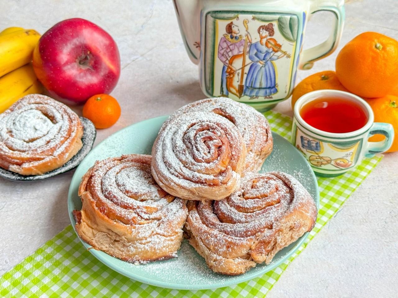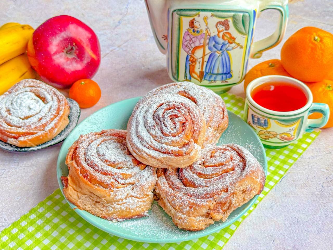 Эти домашние крученые булочки — не только вкусный десерт, но и источник энергии и хорошего настроения. Натуральная начинка из яблок и изюма содержит клетчатку и витамины, а корица в тесте и начинке благотворно влияет на пищеварение и создает неповторимый согревающий аромат, делая выпечку по-настоящему душевной.