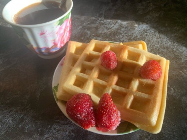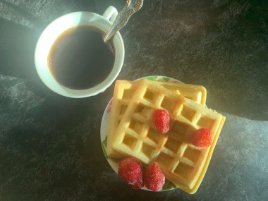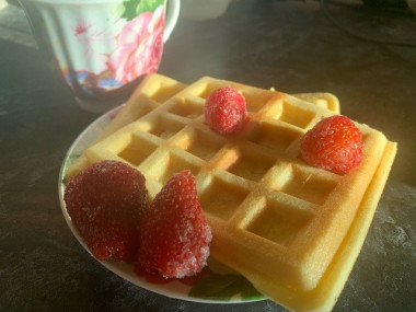 Подавайте вафли к столу, к ним хорошо подойдут свежие ягоды, мороженое или взбитые сливки. Приятного аппетита!