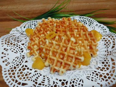 Подруга подарила вафельницу и я,конечно же, захотела её опробовать. На сайте нашла отличный рецепт: венские вафли без молока в вафельнице. Соблюдая рекомендации автора, строго следуя рецепту, приготовила замечательные вафли,которые идеально подошли для семейного чаепития. Сначала вафли были мягкие,но остывая,становились твёрже,как и писала автор. При подаче я полила карамелью.