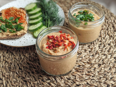 У меня сразу возникла ассоциация с хумусом, и я щедро намазала на ржаную горбушку, посыпала зеленью - вкуснота!