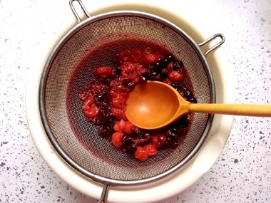 Теперь процедите раздавленные в отваре ягоды через сито, хорошо протирая их деревянной лопаткой или пестиком.