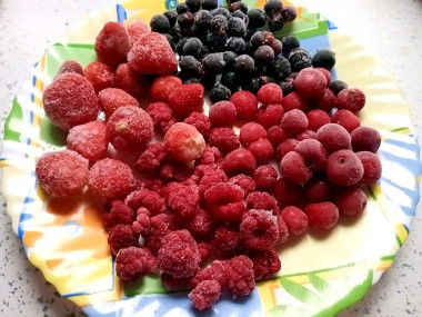 Как сделать ягодное желе с желатином из замороженных ягод в домашних условиях? Подготовьте необходимые ингредиенты. Можно взять абсолютно любые замороженные ягоды, какие вы заготовили на зиму или купили в магазине. У меня были черная смородина, малина, вишня, черника и клюква.