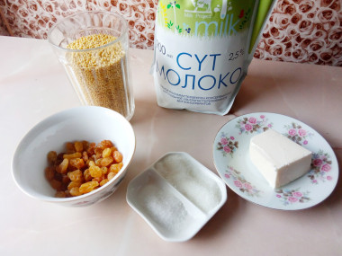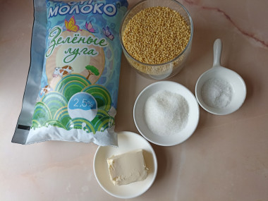 Калорийность продуктов: Пшено, Молоко, Сливочное масло, Сахар, Соль
