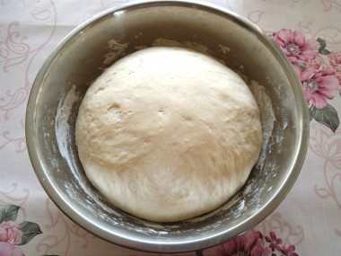 Вымешивайте тесто на столе в течение 5-7 минут до однородности и гладкости. Муки может понадобиться меньше или больше. Много не добавляйте, оно не должно быть забитым, но и к рукам липнуть не должно. В случае необходимости можно немного смазать руки растительным маслом без запаха. Сформируйте из теста шар, переложите в миску, накройте пищевой пленкой или кухонным полотенцем и оставьте в теплом месте без сквозняков для подъема примерно на 40-60 минут.