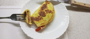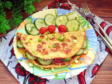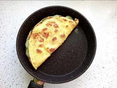 Этой порции нам с дочкой хватило для полноценного питательного завтрака. Овсянка хорошо разварилась, полностью приготовилась, ее практически не заметно. Начинку можно разнообразить по своему вкусу, например, дополнить маринованными огурчиками или салатом.