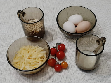 Калорийность продуктов: Овсяные хлопья, Яйца, Молоко, Соль, Твёрдый сыр, Помидоры