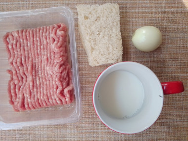 Как запечь котлеты из фарша говядины в духовке? Подготовьте продукты. Фарш подойдет как покупной, так и домашний, сделанный самостоятельно. Для сочности можете добавить в него немного свиного сала, я не стала так делать, у меня чисто говяжий фарш. Хлеб возьмите черствый.