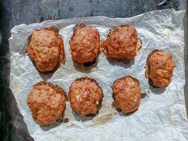 Разогрейте духовку до 180°С. Запекайте котлеты от 40 до 60 минут, они должны стать румяными. Мои котлеты долго не хотели румяниться, я прибавила температуру до 200°С и держала их в духовке час. Вы ориентируйтесь на свою духовку.