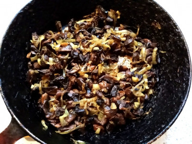Грибы предварительно замочите в холодной воде. Затем их нужно перебрать от мусора и промыть под проточной водой. Нарежьте грибы произвольно. Можете их сначала отварить в подсоленной воде 10-15 минут. В подготовленной сковороде разогрейте растительное масло, выложите грибы и обжарьте их 15-20 минут, постоянно помешивая на среднем огне.