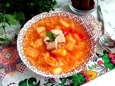 Такие щи варятся быстро, ведь не нужно тратить время на варку мясного бульона. А в летнюю жару это более чем актуально).