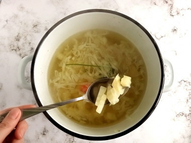 Для приготовления щей я взяла в этот раз свежую молодую капусту и поэтому добавила её в самом конце приготовления. Если вы используете более зрелый кочан, то отправьте нашинкованную капусту в кастрюлю вместе с картофелем (шаг номер 3).