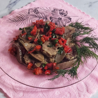 Готовый язык выложите на тарелку. Полейте маринадом и подайте к столу. Приятного аппетита!