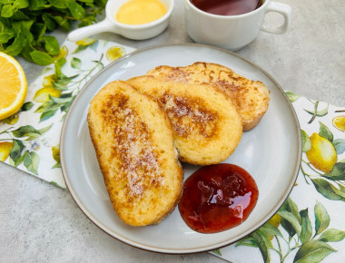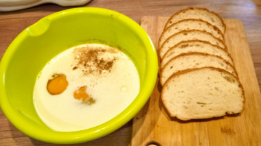 Честно скажу, листала рецепты и увидела этот, с гренками, и так чётко представила вкус, что специально купила и батон, и молоко, и прямо из свежего батона нажарила. Так давно их не делала, что даже забыла про такой рецепт. А ведь это просто палочка-выручалочка, когда печь что-то к чаю совсем не хочется, а сладенького душа и муж просят. Тут раз-два и готово. Я еще немного корицы в яично-молочную смесь добавила, сахар также в смесь добавила, хорошенько размешала, чтобы он растворился. В общем, умяли мы с мужем весь батон, надеюсь, мой тренер не читает этот отзыв))).