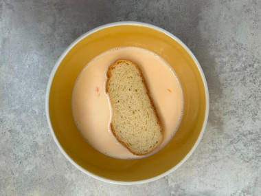 Каждый кусочек батона обмокните в яично-молочную смесь.