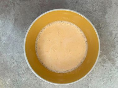 Отдельно в глубокую емкость налейте молоко. Добавьте к молоку яйца .