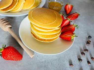 Панкейки из пшеничной муки готовила много раз, но панкейки из рисовой муки решила приготовить впервые. Так как рисовая мука является безглютеновой - это отличная альтернатива традиционным панкейкам. Готовила строго по рецепту. Получаются они вкусными, легкими и воздушными. Благодарю автора за рецепт.