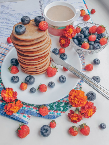 Было интересно попробовать панкейки из рисовой муки, рецепт которых нашла на сайте.
