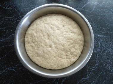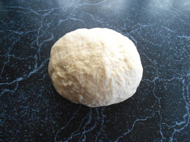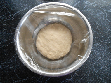 Сформируйте из теста колобок и переложите его в миску, слегка смазанную растительным маслом, чтобы оно хорошо отставало от стенок посуды. Накройте тесто пищевой пленкой и оставьте подниматься в теплом месте примерно на 40 минут. Следите за тем, чтобы в кухне не было сквозняков. Из указанного количества продуктов получается примерно 300 граммов теста - это на 6 пирожков или булочек или на небольшой пирог.