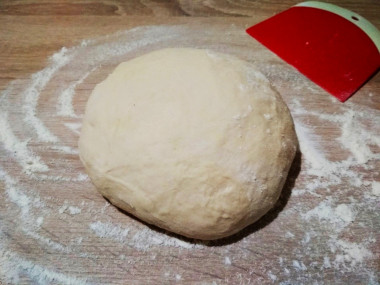 Переложите тесто на стол и хорошо вымесите его в течение 6-8 минут. чтобы все масло впиталось. Я два раза подсыпала понемногу муки, чтобы тесто не было липким. Сформируйте из теста шар.