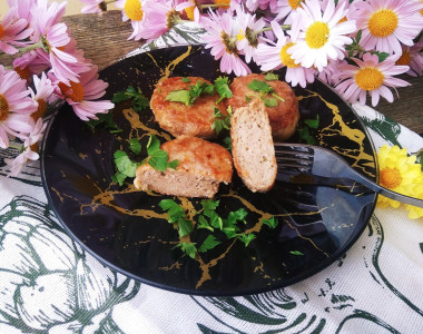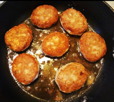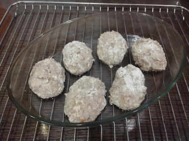 Сформировала котлеты, обваляла в муке. Запекала в духовке при 180° 30 минут.