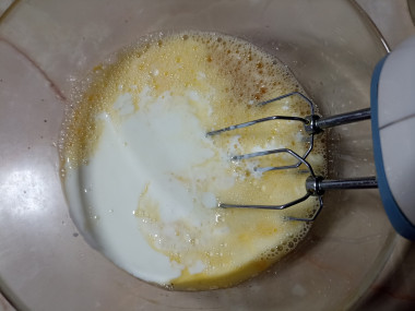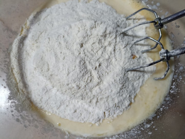 Просейте муку и добавьте в неё соль. Затем постепенно добавьте муку к жидким ингредиентам.