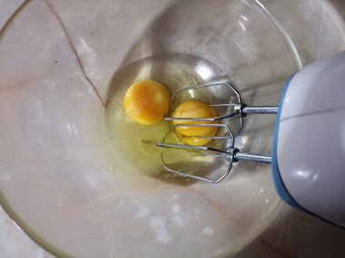 Вбейте яйца в большую миску, добавьте сахар и ванилин.