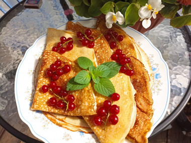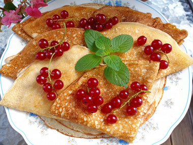 Подавайте блины на стол сразу, пока они ещё горячие. Приятного аппетита!