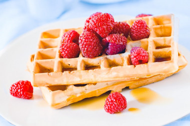 Готовые вафли складывайте на блюдо, по завершении накройте их полотенцем, чтобы сохранить мягкость до подачи на стол. Подавайте вафли с ягодами, фруктами, мороженым и т.д. Приятного аппетита!