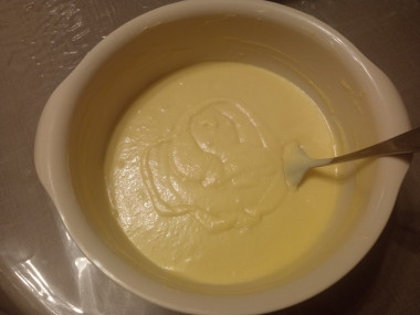 Растопите сливочное масло и охладите его, затем вылейте в чашу вместе с ванильным сахаром, перемешайте.